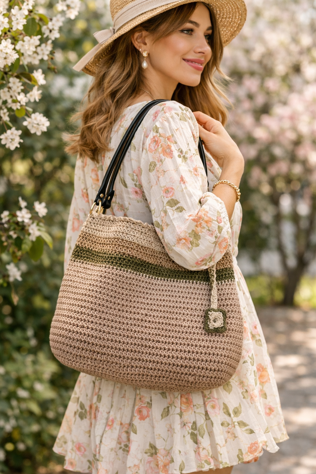 ترکیب مکرومه و رافیا و دسته ی چرمی